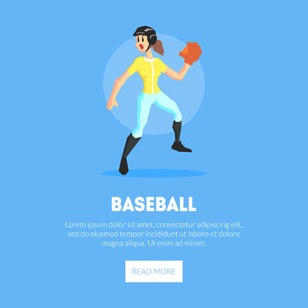 スポーツユニフォームバナーテンプレートを身に着けている野球をしている女の子 デザイン要素は ランディングページ モバイルアプリ ウェブサイトベクトルイラストに使用することができます のイラスト素材 ベクタ Image